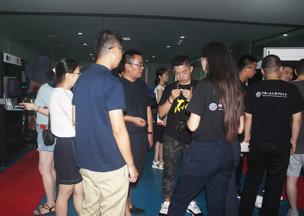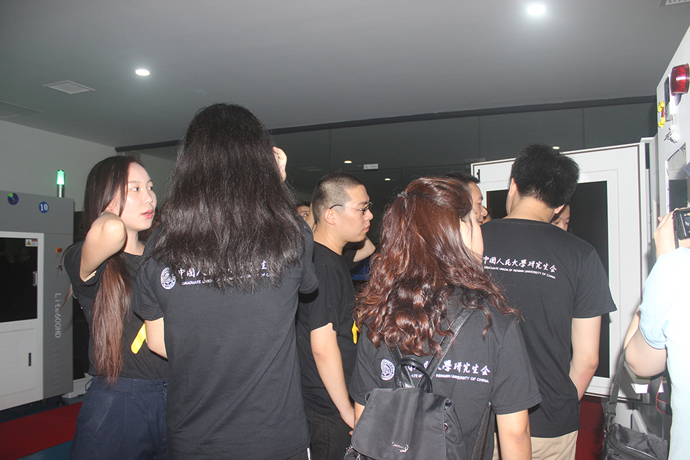 人大師生觀看了光敏樹脂在激光下打印成型的過程,沉浸于3D打印智能化帶來的震撼與沖擊。3D打印技術顛覆了傳統制造,也激發了人大學生在自身學術領域新的思考。