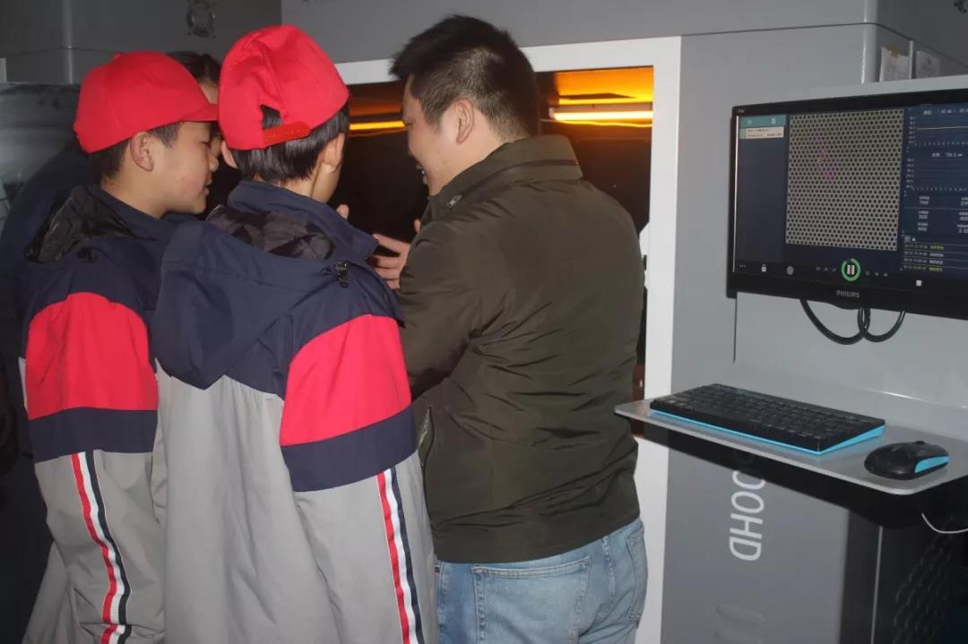 隨后在陶經理的帶領下,同學們參觀了3D打印車間,浙創科技工作人員為大家講解了3D打印機的工作原理。同學們通過工作中的SLA 3D打印機觀察激光下液體光敏樹脂固化成型的過程,更直觀的了解3D打印技術。與前沿科技的零距離接觸,讓同學們對現代科技紛紛贊嘆。