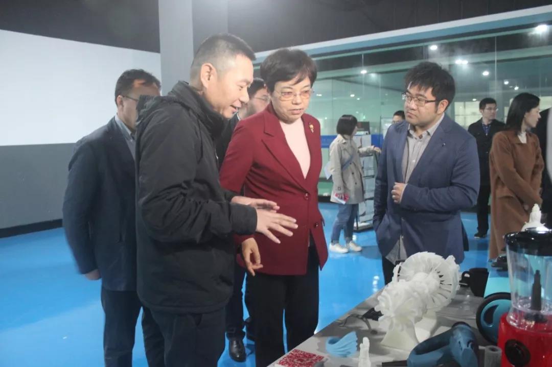昨天上午,寧波市人大常委會主任余紅藝、市人大常委會秘書長王霞惠、市人大常委會研究室主任焦劍等領導在慈溪市環杭州灣創新中心主任楊利登陪同下蒞臨浙創科技參觀調研,了解3D打印產業園發展情況,董事長陶慈江、總經理陶霖珊負責接待。